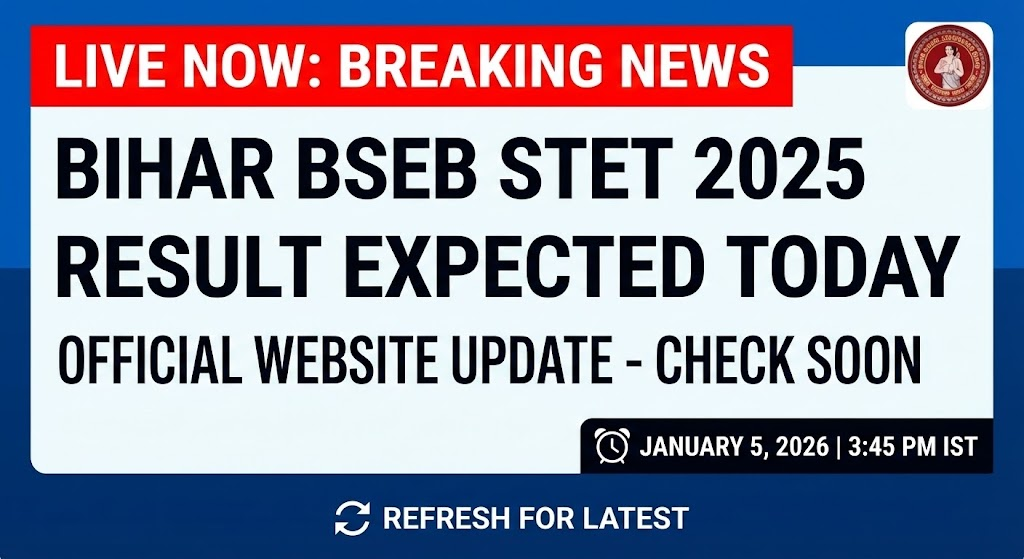 Patna, January 5, 2026 — Thousands of candidates who sat for the Bihar School Examination Board (BSEB) Secondary Teacher Eligibility Test (STET) 2025 are on edge as the result is expected to be released today, January 5, 2026. According to multiple media reports, including confirmation from the BSEB chairman, the board is finalising the results and scorecards for both Paper I and Paper II, which will be published on the official website once the announcement is made.