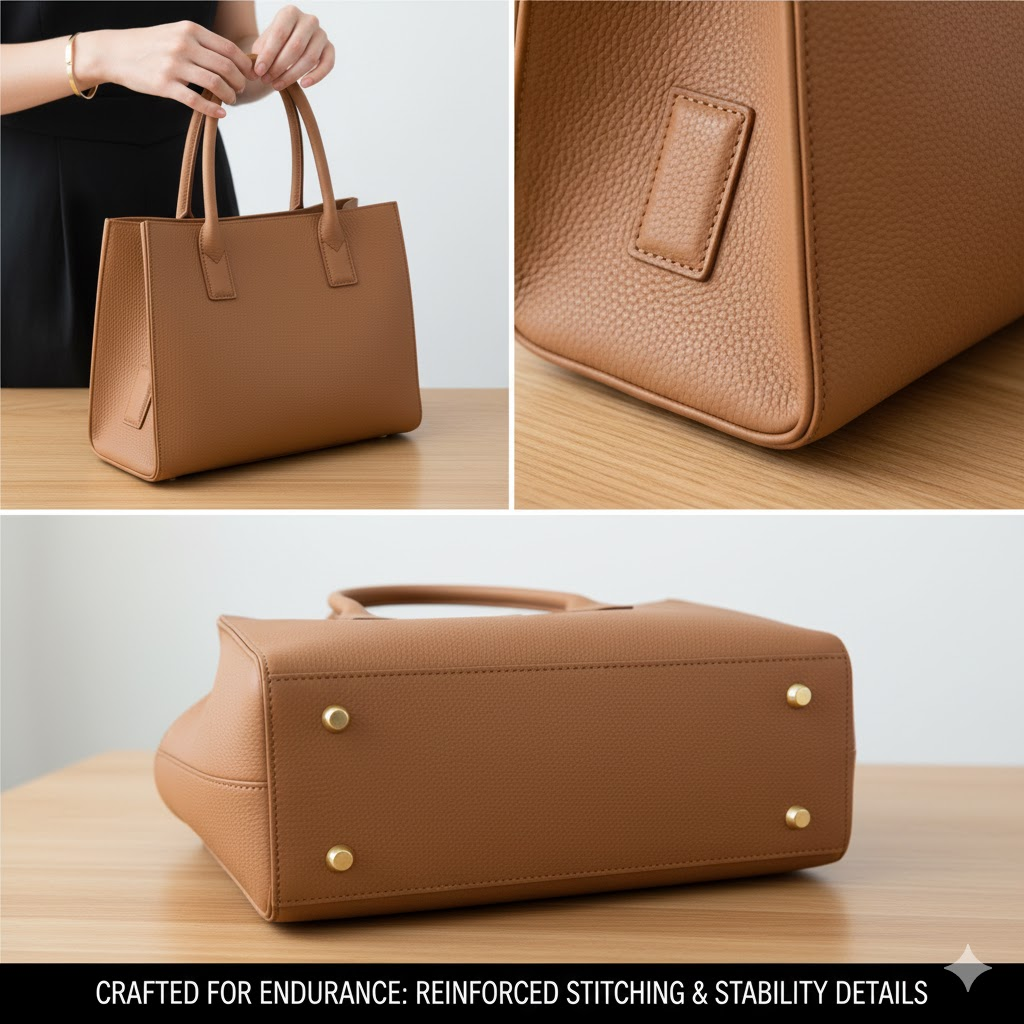 | Leather/Faux Leather | Polished, structured | Office professional tote styles | Wipe clean; condition for longevity. Store away from sun. |