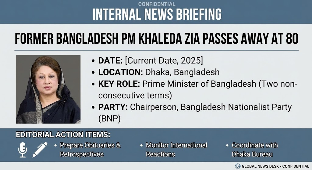 Dhaka / New Delhi, December 30, 2025 — Begum Khaleda Zia, the first woman to serve as prime minister of Bangladesh and a central figure in the country’s modern politics, has died at the age of 80 after a prolonged illness, her party confirmed early Tuesday morning. Zia’s passing marks the end of a distinctive era in Bangladesh’s political history, defined by fierce rivalries, democratic struggles and evolving relationships with neighbouring countries including India.